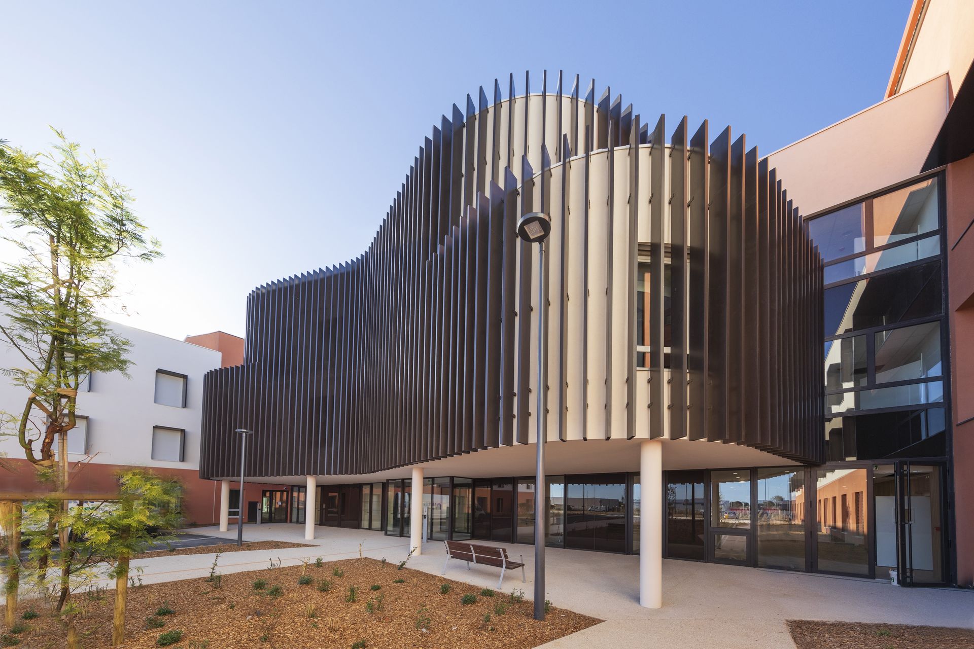 Le Centre Gérontologique du Roussillon, inauguré en mai 2024, est un établissement médical innovant de 15 000 m² situé à Perpignan, conçu pour offrir des soins et des services de qualité aux personnes âgées. Ce centre de santé moderne et accueillant dispose de 302 lits pour patients et résidents, garantissant des conditions d’hébergement optimales.