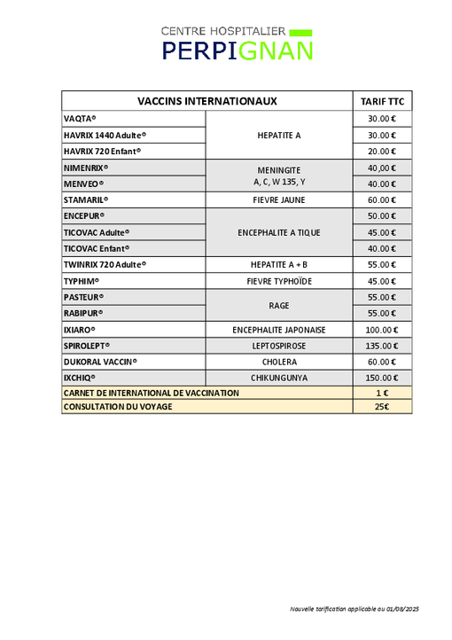 Voyager en toute sécurité avec le Centre Hospitalier de Perpignan Préparez sereinement votre prochain voyage à l'étranger grâce à notre consultation spécialisée "Santé du voyageur". Notre équipe médicale et para-médicale vous accompagne pour partir l'esprit tranquille pour profiter au mieux du voyage et revenir en pleine forme.